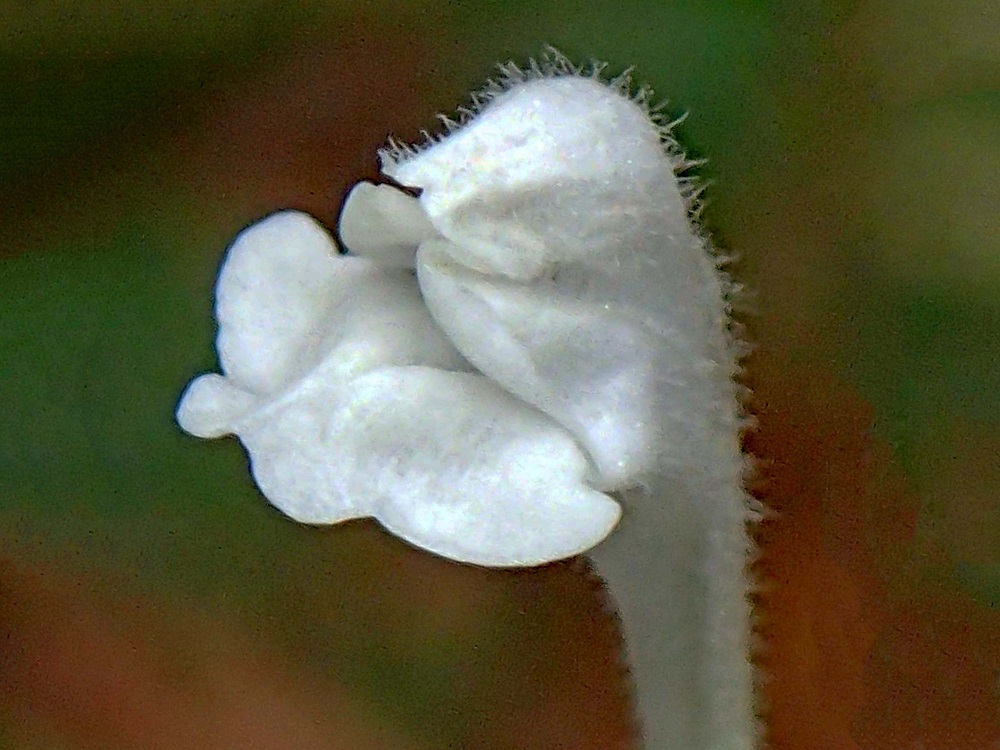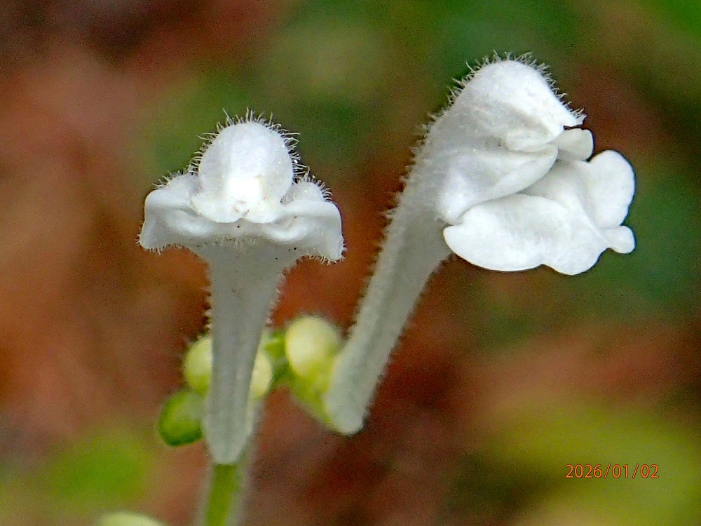 庭先で枯落ち葉を突き抜けて「タツナミソウ」が咲いていた。図鑑によると花期は4〜5月になっているので「狂い咲」と言われるものかな?立浪草の白花品種