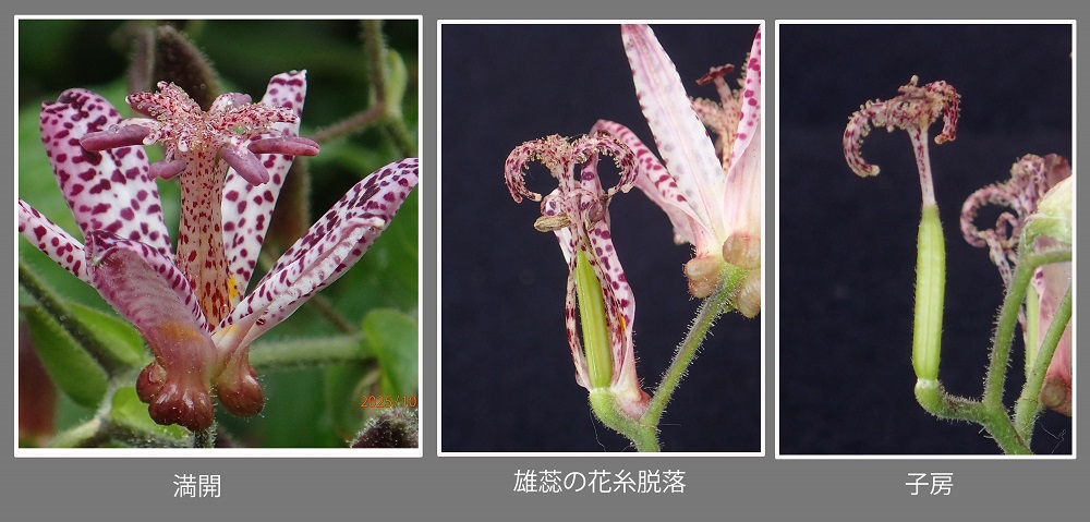花被片6枚の中央にメシベ・オシベが立ち上がり二重の花に見える?珍しい花の形。メシベと子房の廻りをオシベの花糸が廻りを囲んで塔?を作っている。