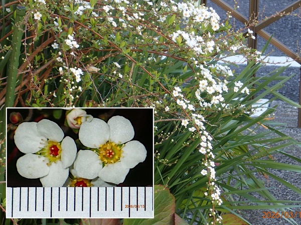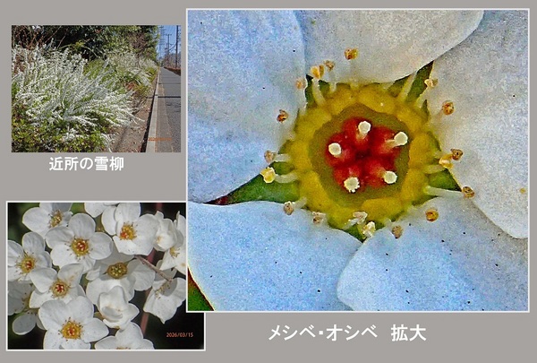夫々の花を拡大して眺めて見たら、5個のメシベの周りに20個のオシベがあり、両性花に間違いないらしい。