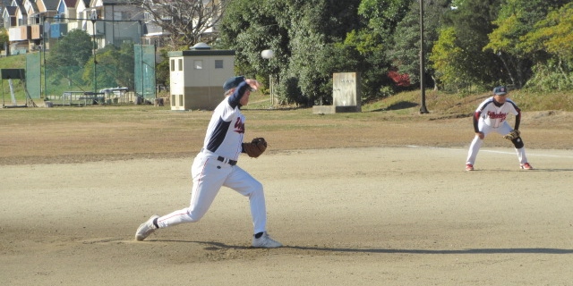 《1月14日》 抜けるような青空下の大神球場A面、何時もの様に一番乗りで着いた。 バケツからボールを出して、買ったばかりのキャッチミットの型つけなどをしていると、今日の自由練習に参加の選手達が、三々五々と集まってきた。 きちんと体操をして、25mのキャッチボール。W55は先週の水曜日の初練習では、25m届かなかったが、今日はナイスボールがいった。肩をつくるとは、こう云うことなのだね。暖かくなったら、もっと投げられる。 W55の投手でパンチショット打撃練習が一回りしたころ、昭島Mの選手たちも加わり10名で練習となった。W28の投手でフリー打撃、結構な汗をかいて休憩。 休憩中に、打撃の課題についてアドバイスの場面があった。他の選手への助言も自分には良き指摘ととらえている。素直に参考になる。 守備練習は、内外野に分かれて行った。W55はセカンドにつく、M選手がゴロを打ってくれる。捕球時に重心が前過ぎてエラーばかりだ。理由は分かっているので徐々に直ていくことにする。 こんな楽しい還暦野球、入会希望の人が来ないかな!Welcomeだよ。 ★昭島W55saitou ★応援コメントありがとう!頑張ります。 |