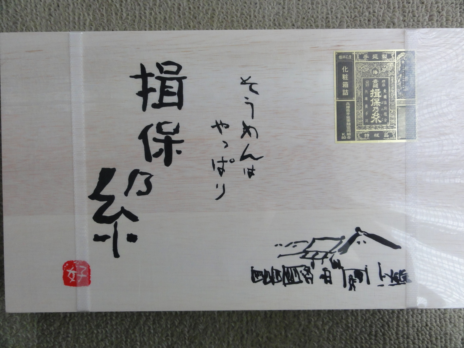3,000円の揖保の糸ですが、そうめんはやっぱり揖保の糸と書かれ落款が押されている桐の箱に入っています。50ヶ限定だとか?