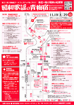 初日の19日はあいにくの天気ですが、明日は天気が回復しそうですね。 昭和レトロな街『青梅』で行われる、『青梅アートフェスティバル2011』に、バンディーズ(キャンディーズトリビュート)が出演します。(11月20日) 今回のテーマは、『昭和歌謡の青梅宿』 バンディーズ・あがた森魚さんを始め、昭和歌謡にちなんだライブも盛りだくさんです。 人力車・懐古自動車パレード・ちんどん歌謡パレードなど、昭和らしさの演出も沢山ありますので、一日中楽しめますね。 着物や和物を身につけている方に、各種特典がありますよ。 輪タク無料・人力車無料・豚汁無料・入館料無料・茶屋サービス無料など はっぴも和物ですね!(笑) 昭和レトロな町青梅に、昭和レトロなイベント青梅アートフェスティバル2011に、ぜひお越し下さい。 映画看板 青梅と言えば、町中のあちこちに昔ながらの映画看板が飾られているのでも有名ですね。 青梅駅地下通路に『鉄道員』の映画看板がありますよ。(スーちゃん出演) バンディーズと共に、昭和へタイムスリップしましょう。 紅葉がみごろ 今週末、紅葉がみごろになりそうです。ちょっと足を伸ばして、御岳山登山にチャレンジしては? 青梅鉄道公園 D51や初代新幹線の展示がある、青梅鉄道公園も青梅駅徒歩圏内にあります。(坂道ですが) 青梅鉄道公園HP http://www.ejrcf.or.jp/ome/ 梅・ゆずが特産品 梅・ゆずの産地としても有名ですよ。昔の梅酒は、日本酒から造られていましたので、地酒で作られた梅酒がお土産にお勧めです。(澤ノ井) 青梅アートフェスティバル2011のチラシ、PDFファイルで送信できますので、ご希望の方はお気軽にお申し付け下さい。 candies1@hotmail.com 11月20日(日) 青梅アートフェスティバル2011 http://art-fes.omjk.jp/ 『昭和歌謡の青梅宿』 2ステージありますが、会場が異なりますのでご注意下さい。各会場間の移動に、約10分掛かります。 会場 第一ステージ(特設張り出しステージ) 昭和レトロ商品博物館(赤塚不二夫会館隣) http://www.mapfan.com/index.cgi?MAP=E139.15.49.3N35.47.7.7&ZM=11 赤塚不二夫会館HP http://akatsuka-hall.omjk.jp/ 紙テープNG・キラキラ紙テープNG (通行中の道路を挟んで鑑賞するので) 開演 12時〜 料金 無料 会場 第二ステージ(勝沼・3丁目の夕日ステージ) 青梅街道沿い駐車場(青梅信用金庫隣) http://www.mapfan.com/index.cgi?MAP=E139.16.6.0N35.47.10.4&ZM=13 紙テープ(状況次第) 第二ステージに直行される方は、東青梅駅から歩いた方が近いです。 開演 14時〜 料金 無料 諸事情により、内容変更・中止等がありますので、主催者発表の情報を直前にご確認の上、ご来場をお願いします。 青梅アートフェスティバル2011HP(主催者) http://art-fes.omjk.jp/ バンディーズ公式ブログ(ばんど屋主催者) http://bandya.exblog.jp/ ご注意 公式ブログ管理人(だまさん)と、スーちゃんお手紙隊(森田)は別人です。問い合わせの際、宛先を間違えないようにご注意下さい。 問い合わせ先 (スーちゃんお手紙隊) candies1@hotmail.com http://www.youtube.com/user/BandiesTV#p/u/6/93GGo5WGwFA |