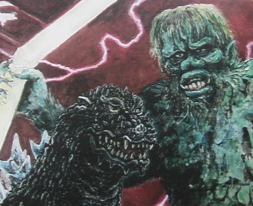 また、ブログにアップした絵は、あの井上アーツのボックスアートを描かれた田宮教明氏より、ワンフェス会場で頂きました。以前私の書いた怪獣小説「ゴジラ対ガイラ」をモチーフにして、絵の中には私まで描いて頂きました。大感激です!