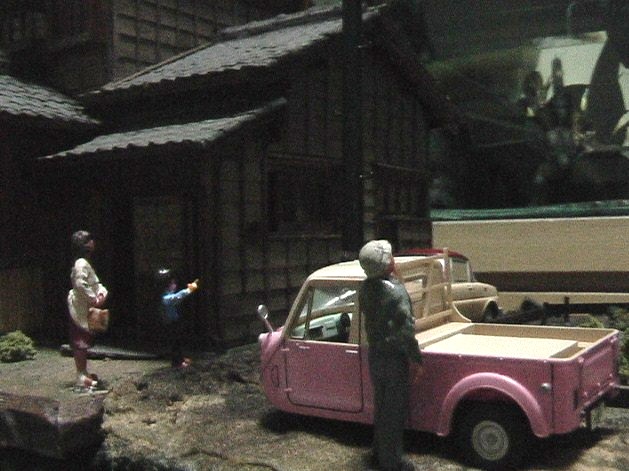 また、ワンフェスで展示したジオラマに少し手を入れております。ジオラマのサイズに合う、昭和の自動車の模型と人形を置いて見ました。ジオラマの製作も楽しいですね!