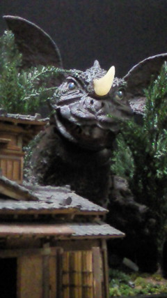 画像は、ジオラマを使ってガイラを撮影して見ました。ジオラマももう少し改造しようと思います。