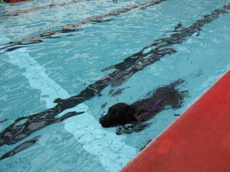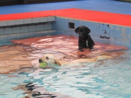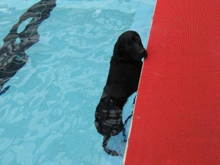 呼ぶと近くまでやってくるのにプールから上がらず…