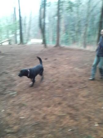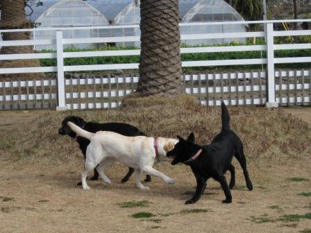 ドッグランは山の傾斜をそのまま活かしたつくりになっていて、真ん中に木が生えていたり、倒れていたり…