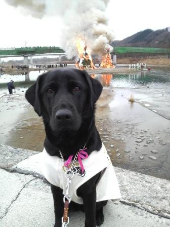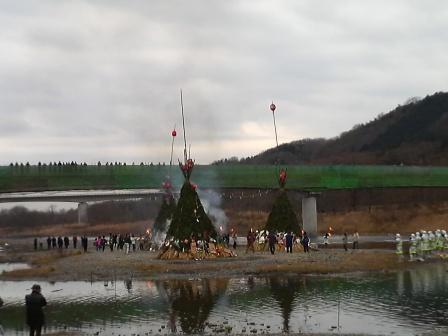 堰下の河川敷で行われたどんど焼きを見に行ってきました〜