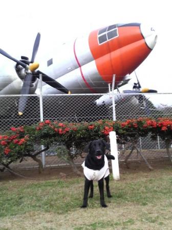 飛行機の前で記念撮影