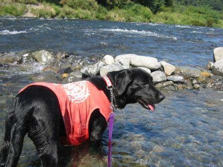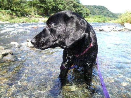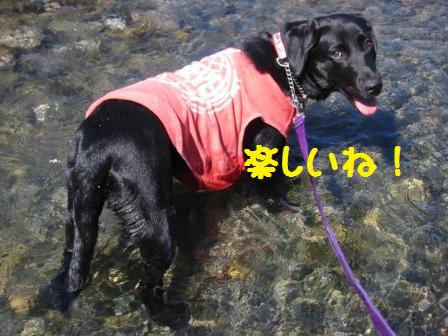 と多摩川の流れの中へ Tシャツが濡れても気にしな〜い
