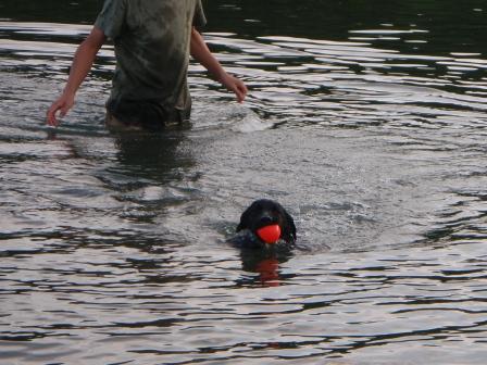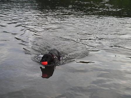 、ボールを咥えてすいす〜い