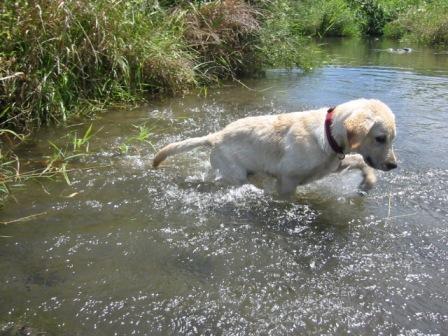 バシャバシャと水しぶきをあげて走る〜