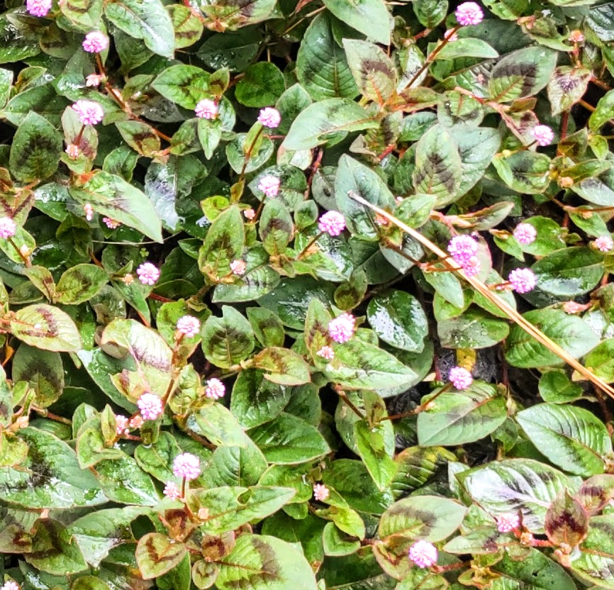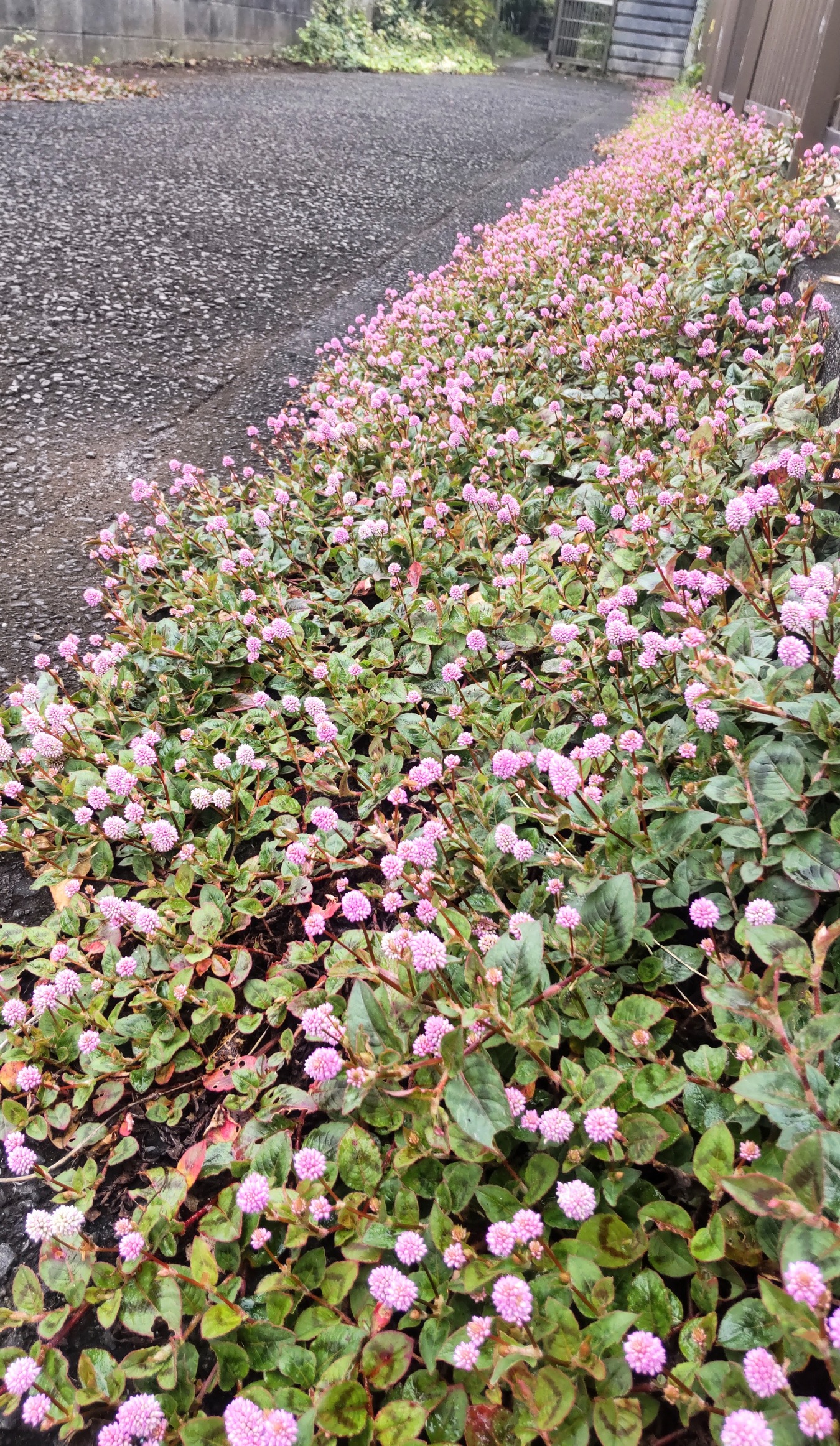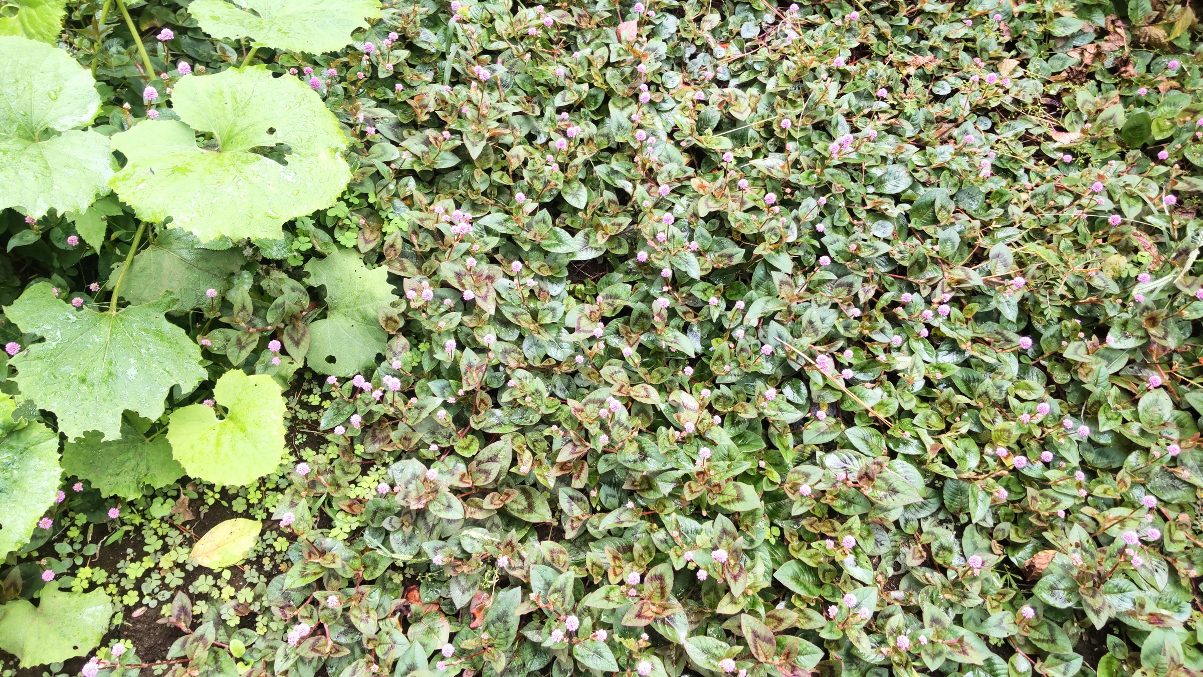 赤紫蘇のピンクの花と山独活の白い花が共演しています。