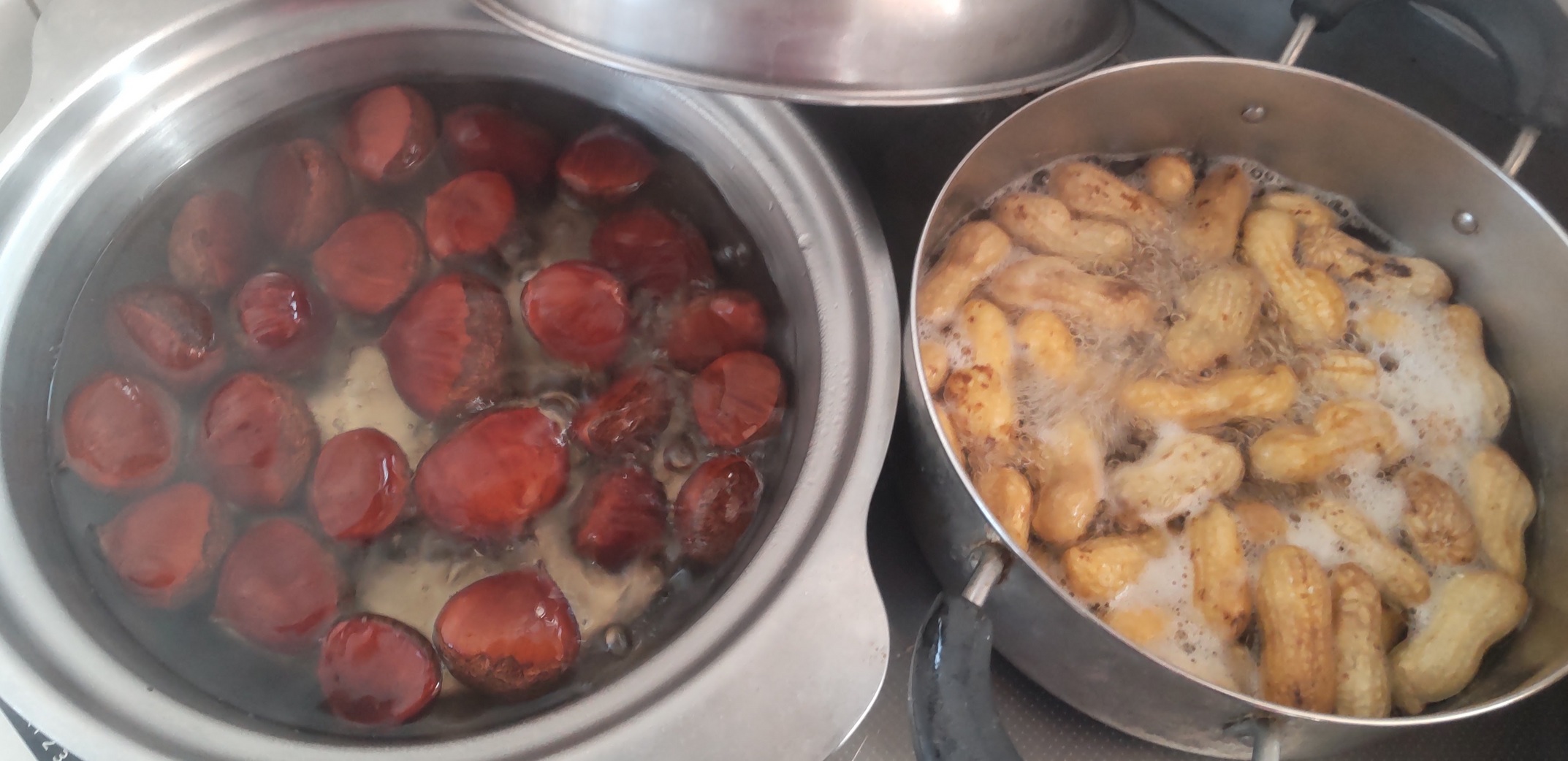 しょうゆ、酢、黒糖少々、みりん少々で味付け
