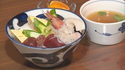 市内近隣の7店舗の得意料理が盛り込まれている特別なお弁当だ。