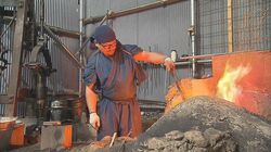 30キロの玉鋼をつくるのに9時間かかります。全国に300人ほどいるといわれている刀鍛冶職人の中でも、「たたら製鉄」から自社で行っているのは10人程度。稀有な鍛刀場であり職人なのです。