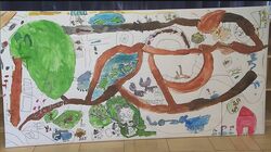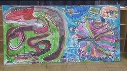大きな模造紙を前に躊躇することなく絵を描いていく子どもたち!