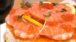 第1位 生アトランティックサーモンカップ新鮮で脂のノリもばっちり、濃厚でやわらかいサーモン!