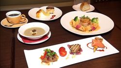 前菜3種盛り・スープ・パン・メイン・デザート2種盛り・コーヒー付。