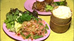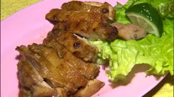 タイ醤油、ココナッツミルク、ハーブを加えたタレに鶏肉を漬けこんで、炭火で焼いた料理です。