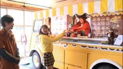 壁面のカラフルなイラストや店頭のビンテージカーがひときわ目立つこちらは、