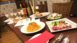 ご主人が自ら作り上げた大きな薪窯で、鉄串に刺したお肉がジュージュー焼かれ、お皿にたっぷり盛られます〜
