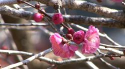今年の梅は例年より2週間ほど遅め。。中継当日はまだまだつぼみが固い木が目立ったんですが、そんな中でも、早咲きの梅・八重寒紅がほころんでいる様子などをお届けできました。