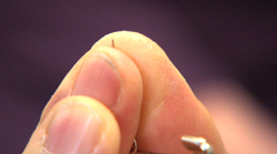 安全ピンの針の先をごく短く持ち、足の表面をチクチクと刺すのです!!