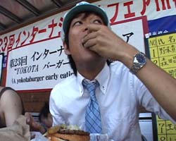 初日に注目のイベントは、巨大ハンバーガーの早食い大会。