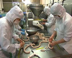たしかに、一つ一つ長さを確認し、手作業で作っている様子が福生ハムにて取材できました!