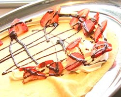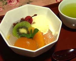 もっちりと口あたり滑らかな食感と、たっぷりのフルーツに白みつで、すっきり爽やかな味わいに。飾られたミントが、やっぱり洋風のアクセント