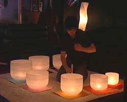 さらに会場では「クリスタルボウル」と呼ばれる楽器の演奏も。その神秘的な音色がろうそくの揺れる灯りと相まって、参加者は我知らず眠りの世界へ・・・・(笑)でも、演奏者にとってはお客様のリラックスが至福なんだそうです!心置きなく寝よう!ではなく、好きなスタイルでリラックスしよう!!
