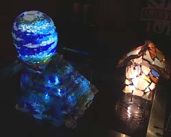 NPO法人エコロジカルアーツ協会が主催したのは、海浜清掃で集められた貝殻などを利用して造られたマリンアートの展示。廃品から再生したランプと、地球を救う灯り・・・幻想的な光景です。
