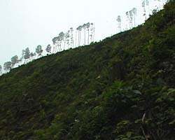 ご覧のように、山の稜線にだけ一列キレイに木が残されている以外は、一面の切り株と岩肌!ナッチャンも滑り落ちるほどのつるんとはげちゃった山ですヽ(゚Д゚ヽ)