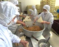 3割は人間の手で美味しい納豆を作り上げる、という菅谷食品。