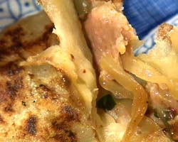 シャーピンとは、小麦粉と水で作った餅生地に豚肉と