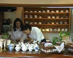店主の吉田さんがお茶を淹れ、娘さんが手作りケーキを作ります。