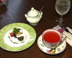 ←こちらは、「暖炉の火」(バラの実、ハイビスカス、シナモンetc入りのフルーツティ)と季節の果物をふんだんに盛ったケーキ