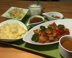 カレーのほかにも、エビチリソースや焼きそばなど、