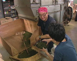 この工程は「味・香り・色」といった、お茶屋さんそれぞれの個性が出る大切なところ。企業秘密だそうです!