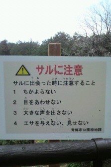 下・看板、このあたり猿も住んでいます。