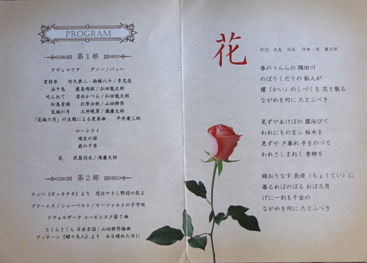演奏曲目は写真右のとおり。