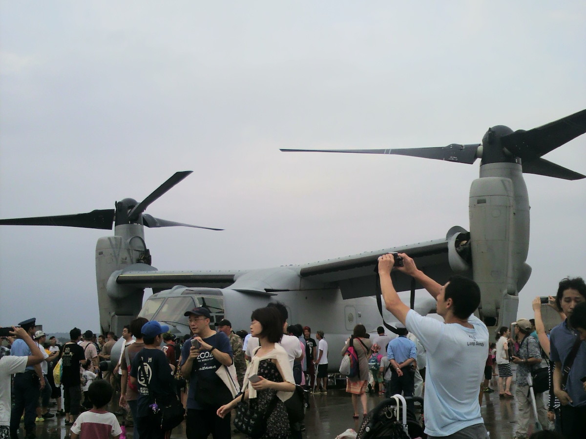 オスプレイが陳列されていたので、クルーに聞いていました。