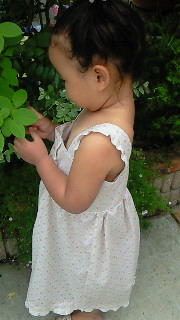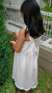 肩ひもと裾に、フリルをつけて、少し甘めに仕上げました。