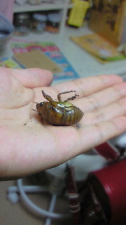 そう、7年も土の中で過ごしている、あの せみです。生きているのを、生まれて初めて見ました!