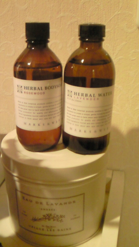石鹸でできた ボディソープと、ハーバルウォーター。