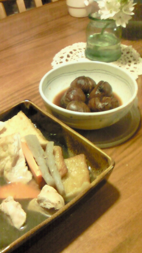 栗の皮をむくのが大好き なんて・・ Aさん ちょっと変だけど(笑)!!! こんな面倒な料理は なかなかやれないから いつでも 大歓迎! たくさんむいて また持ってきてね!
