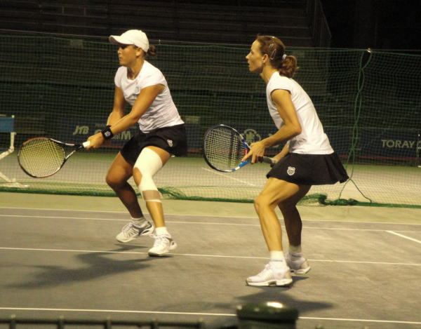 杉山愛・ハンチェコバ組は7−6,7−5で