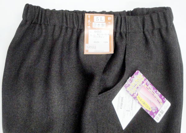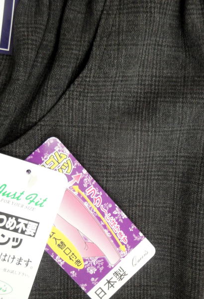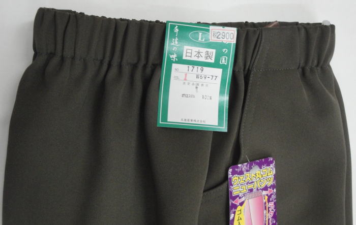 ウエスト丸ゴム使用でゴム入れ替え口付きなので簡単にゴムの入れ替え可能。