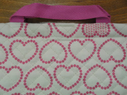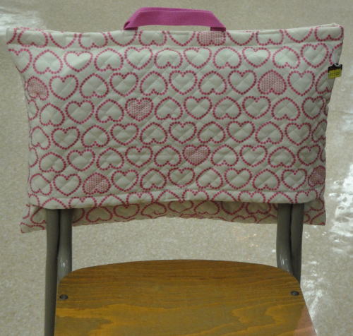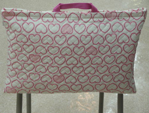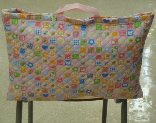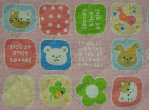 総キルティング・ピンク地の動物柄・防災頭巾カバー。 |